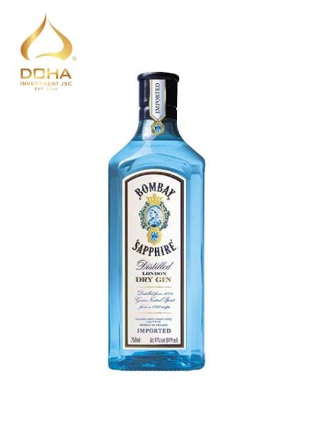 Chai rượu Bombay Sapphire Gin nổi tiếng thế giới được thiết kế trong chai rượu màu xanh đặc biệt của hãng. Mỗi giọt đều có chứa tới 10 loại thảo mộc được lựa chọn bằng tay từ các địa điểm kỳ lạ trên khắp thế giới.