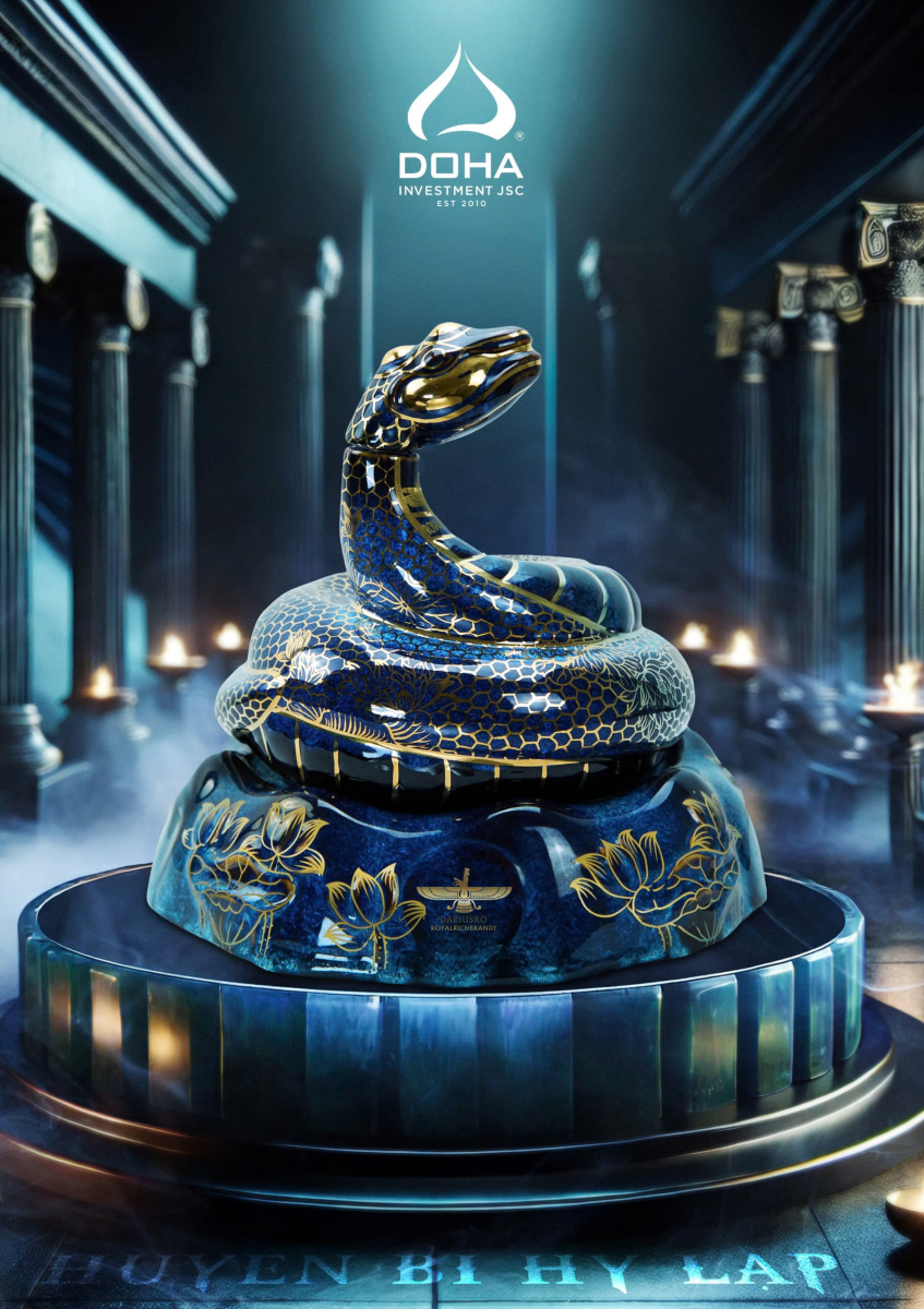• Rắn Vàng DOHA là biểu tượng của Sự Tái Sinh, mang ý nghĩa của khởi đầu mới, hứa hẹn một năm tràn đầy sức sống và phát triển vững bền. Qua tác phẩm Thần Rắn, chúng tôi muốn gửi gắm lời cầu chúc chân thành, mong Quý khách luôn vượt qua mọi thử thách, hướng tới những đỉnh cao thành công trong cuộc sống.