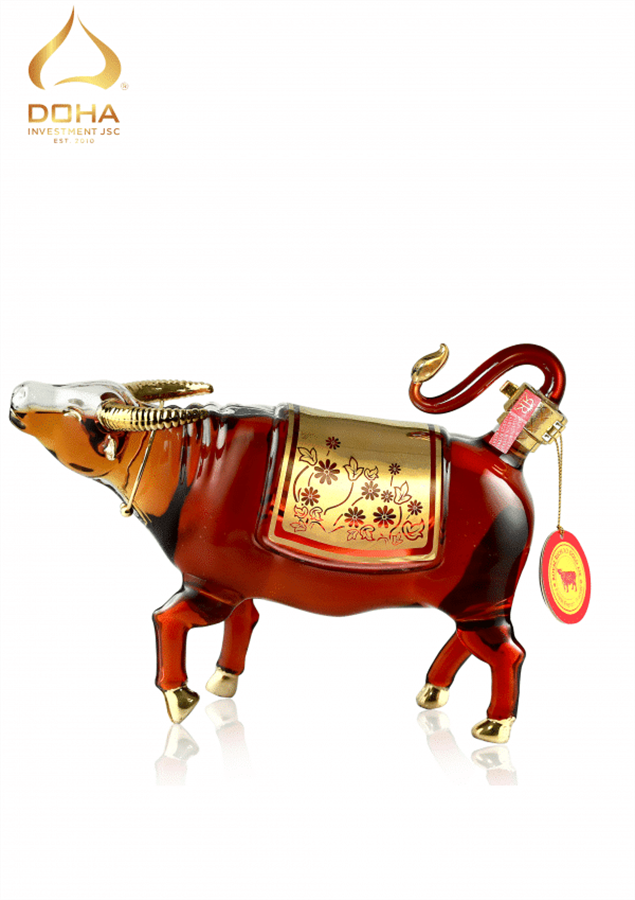 "Rượu Brandy XO Pháp: Trâu vàng đông hồ chứa rượu Brandy XO lừng danh thế giới từ tập đoàn Slaur. Rượu được ủ từ những trái nho tươi mọng nước, trải qua giai đoạn chưng cất phức tạp sau đó được ngâm ủ lên men trong thùng gỗ sồi lâu năm kỳ công. Hương vị cay nồng nhẹ nhàng hơn 6 năm tuổi, nồng độ 40% đủ làm người ta lâng lâng như khẽ chạm vào đôi môi ai kia làm tim rung động. Vảy vàng 23k từ Đức: mang biểu tượng của sự cao cấp, vảy vàng trong rượu trâu đông hồ được làm nên bởi kỹ thuật hiện đại tinh luyện vàng đến độ tinh khiết cao, tạo ra những tấm vàng mỏng gần như trong suốt bắt mắt. Vảy vàng vừa mang sự đẳng cấp vừa rất an toàn cho sức khỏe người dùng. " Với chất rượu Brandy XO được nhập khẩu từ Pháp mang hương vị nhẹ nhàng ngọt dịu hoà với một chút vị chua từ mơ tươi lên men xen lẫn là mùi thơm nhẹ nhàng từ hoa quả đã làm nên một mỹ vị nhân gian, chất rượu tuyệt vời ấy còn được tô điểm bởi những vảy vàng 23k xuất xứ từ Đức đã làm tăng thêm sự tinh tế, sang trọng và quyến rũ. Thức uống dịu nhẹ này đã được che chở, bao bọc bởi một chú trâu chất phác, được DOHA lấy ý tưởng từ bức tranh Đông Hồ của nghệ nhân Nguyễn Hữu Quả. Tất cả đã tạo nên một bức tranh vô cùng hoàn mỹ, một sản phẩm vừa mang tính hiện đại nhưng vẫn mang nét đẹp của cội nguồn, dù đi đâu vẫn nhớ về văn hoá dân tộc Việt Nam. Đây có lẽ là một món quà rất ý nghĩa để chúng ta gửi tặng cho những người thân yêu, những bạn bè trân quý vào những ngày lễ cũng như vào mỗi dịp tết đến xuân về, RƯỢU LINH VẬT là một sản phẩm rất tinh tế, độc đáo, sang trọng ẩn sâu bên trong lại mang một tình cảm đặc biệt to lớn, sẽ thay bạn gửi trao yêu thương.